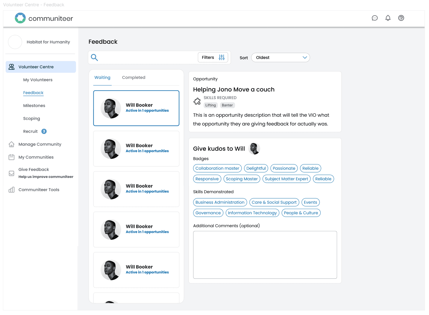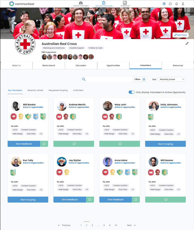 Volunteer management can be drawn out and unforgiving. Communiteer's platform lacks a clearly defined user experience, functioning more like an extension of the volunteer view rather than a dedicated workspace for managers. The lack of clear role separation leads to confusion around available actions, cluttered interfaces, and difficulty prioritising tasks.
