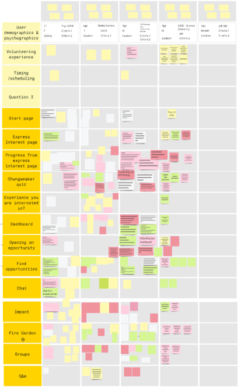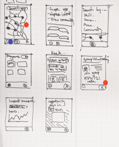We began by kickstarting a design sprint; fleshing out different takes on increasing volunteer rates in young adults. We found that scaling current methods, program creation, opportunity creation and volunteering experience were all core factors in hitting targets.