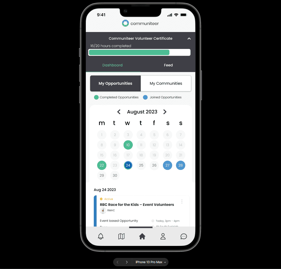 Prototype & framework for MVP. Added calendar to show what days have joined opportunities. Revamped UI