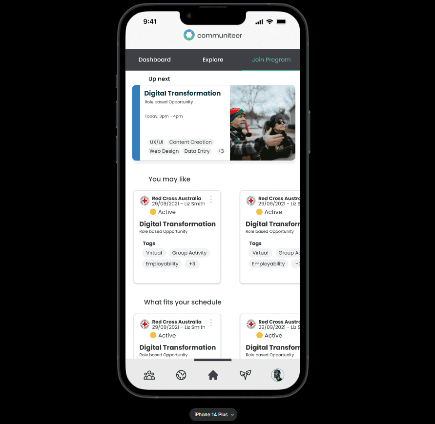 An ideation based approach was made in the form of a design sprint utilising Communiteer's thorough understanding of university students as a foundation to streamline meeting targets of the NYI (National Youth Initiative). Following the design sprint, came a short period of UX research, then moving into the develop and deliver stage emulating the second half of the double diamond design framework.